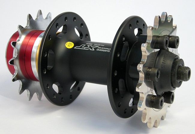 This was a special order for Freshtripe Bikes requiring a rear XT M756 hub to set up as a flip/flop hub - fixed one side and free the other. Perfect for an MTB or wider spaced road bike.